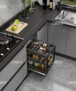 giá xoong nồi inox mờ cao cấp gắn cánh âm tủ DNHS